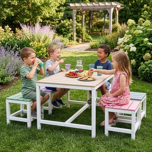 5PCS Kids Table, Chairs Play Set Activity Furniture for Children Indoor/Outdoor