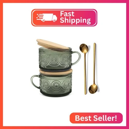 JVJRFQ Vintage Coffee Mugs Set of 2 Green, 14 Oz Overnight Oats Containers with