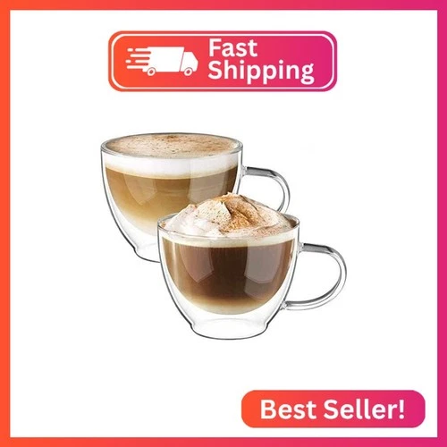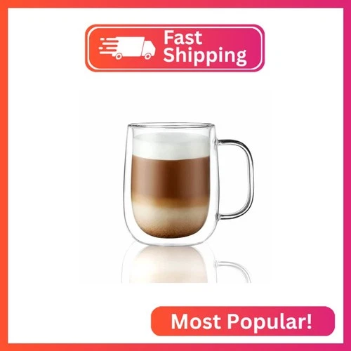 ecooe Double Walled Glass Coffee Mug 12 oz Latte Cappuccino Cups Set of 2, Clear