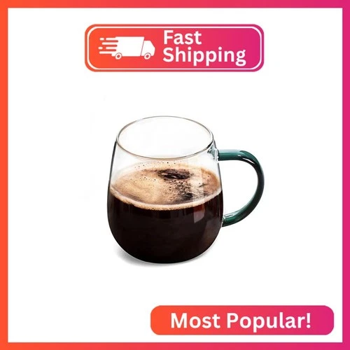 MAQQL Clear Glass Mug with Handle, Dark Green Handle 16 oz, High Borosilicate Gl