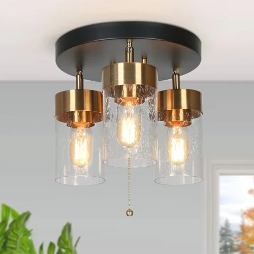 Flush Mount Ceiling Light, Black and Gold Kitchen Light Fixture with 3-Light