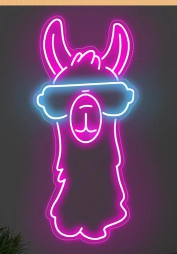 Llama Neon LED Wall Light, Pink Blue, USB, 16.5x7.87in, Kids Teens Bedroom Decor