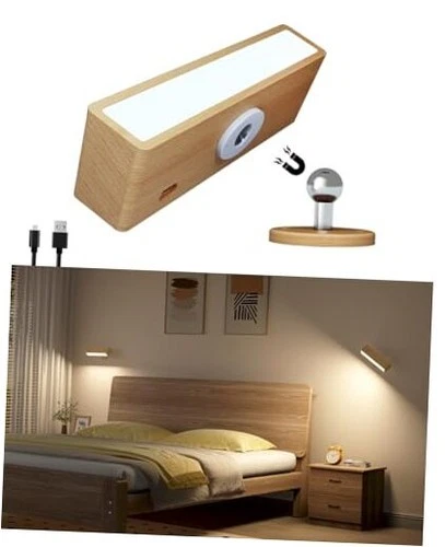 Wall Lights Battery Operated Wooden,Magnetic 1Pack-Touch Control Beech wood