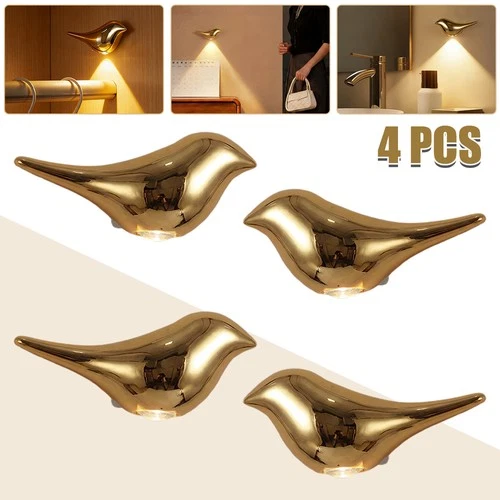 Gold Plated Bird LED Night Light Motion Sensor Rechargeable Wardrobe Wall Lamp
