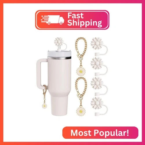6 Set Compatible with Stanley Cup Accessories, 4 Flower Straw Toppers Compatible