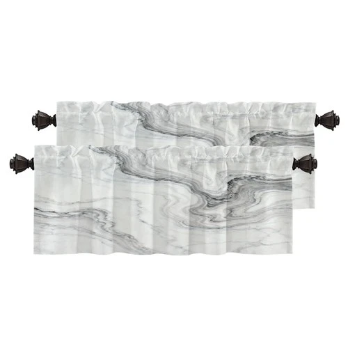 White Gray Abstract Marble Kitchen Valances for Windows,Black Art Curvy Wave ...