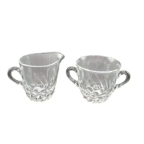 Vintage Clear Pressed Glass Creamer & Sugar Swirl Pattern Retro Kitchenware