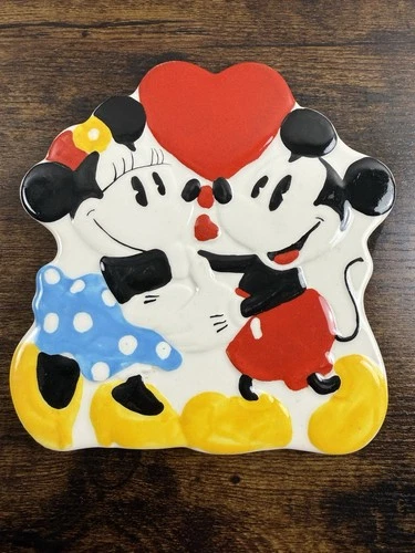 Mickey Minnie Mouse Ceramic Plate Dish Disney Valentine Heart Trinket 8” VTG