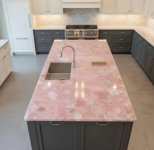 36x24 Luxury Rose Quartz Kitchen Island Top Custom Pink Gemstone Countertop Slab