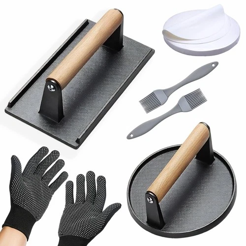 Smash Burger Press Kit 56 Pcs,grill press,7.9 Inch Cast iron hamburger smashe...