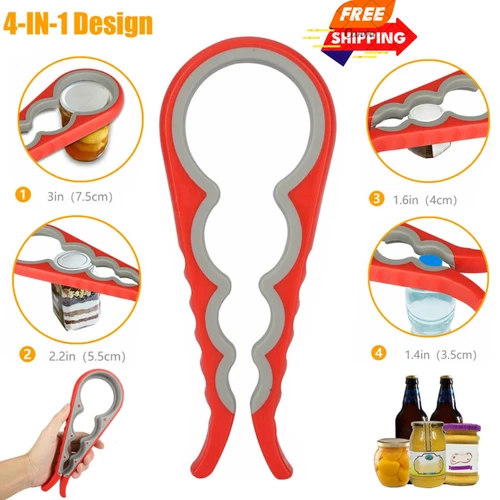 4 in 1 Quick Jar Rubber Opener Lid Bottle Cap Grip Twister Remover Kitchen Tool