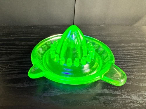Uranium Glass Juicer Reimer Crown Crystal Depression Era Green Vintage Glows