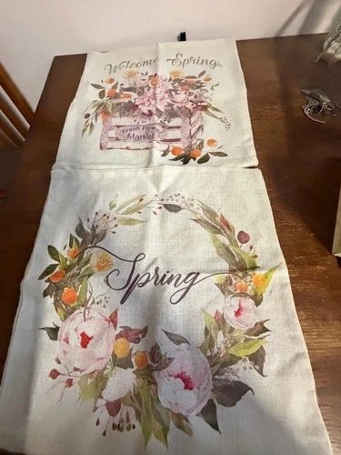 Spring Pillow Covers Set of 2 Floral Farmhouse Welcome Spring Wreath Linen Zippe