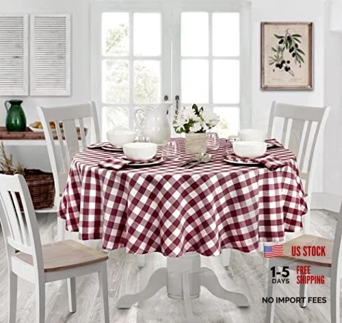 Country Rustic Buffalo Plaid Cotton Tablecloth, 70 Inch 70" (Round) Burgundy