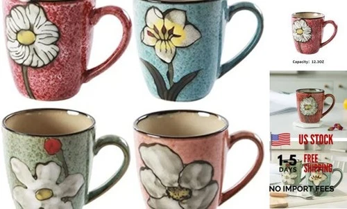 Ceramics 12oz Cappuccino Mug,Coffee mugs,Tea mugs,Kiln Red+Blue+Green+Pink