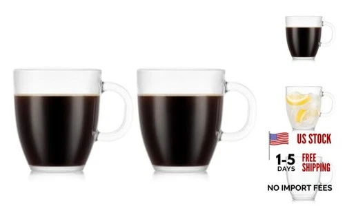 12oz Bistro Coffee Mug Single-Wall Tempered Glass, Clear | Single-Wall 2 Pack