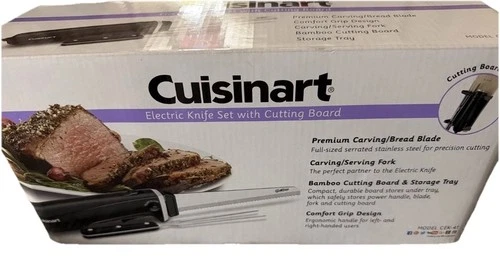Cuisinart Electric Knife Set Cutting Board Stainless Steel/Black Fork CEK-41 NEW