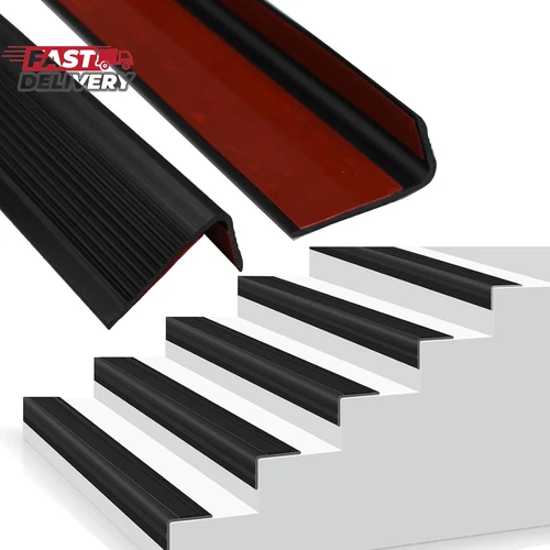 Black Vinyl Stair Nosing & Edge Protector - Self-Adhesive Non-Slip Stair Edging