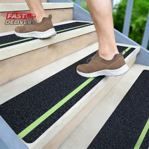 6”X30” Stair Treads Non-Slip Outdoor Tape – (10-Pack) Black Anti-Slip Strips