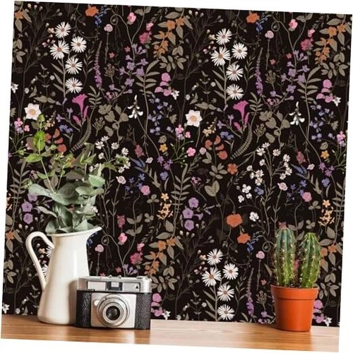 Wallpaper Self-Adhesive Blooming Vintage Colourful 17.3" x 118.1" Autumn-Black