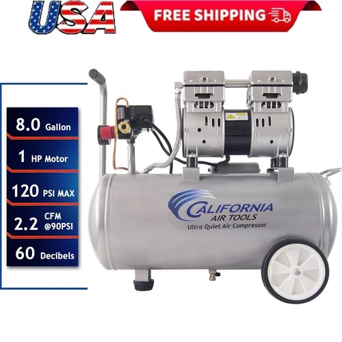 Steel Tank Air Compressor Ultra Quiet Oil-Free 1.0hp 8gal W/Wheel Kit Air Filter