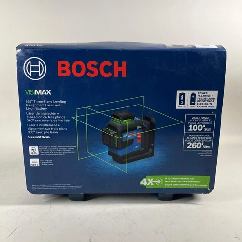 New Bosch GLL300-42GL 3.7V 360' Three-Plane Leveling & Alignment Laser