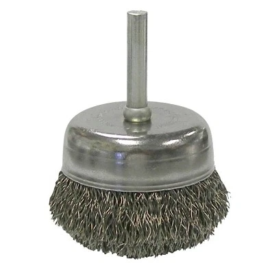 Stem-Mounted Crimped Wire Cup Brush, 2 in dia, 0.0118 in Steel Wire Weiler 14306