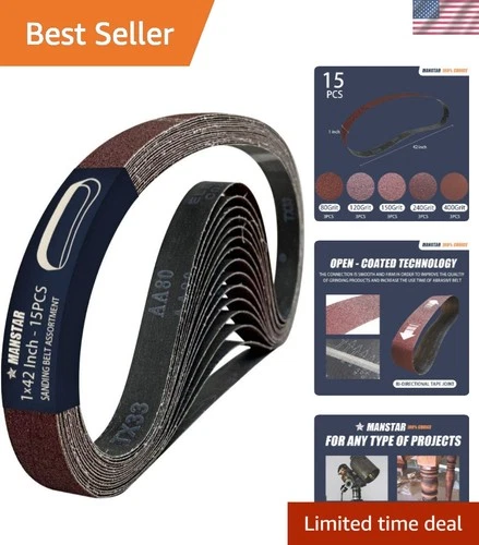 15-Piece Aluminum Oxide Sanding Belt Set 1x42 Inch - Grit 80-400 Assortment