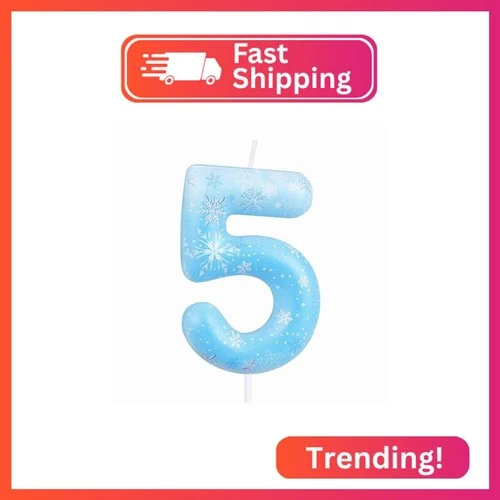 iNINGER Blue 5th Birthday Candles, Frozen Snow Themed Number 5 Candles with Snow
