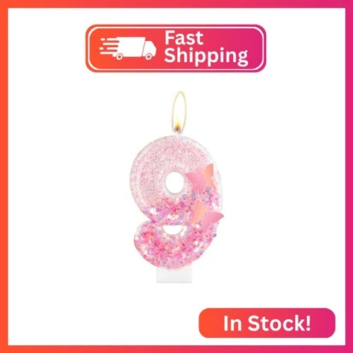 iNINGER Pink Butterfly 9th Birthday Candle, Numeral Candle for Wedding Cake Topp