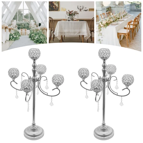 5 Arms Crystal Candelabra Freestanding Candle Holder Centerpiece Silver