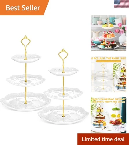 Durable 3-Tier Acrylic Dessert Stand Set - 8 Total, Gold & Clear Finish