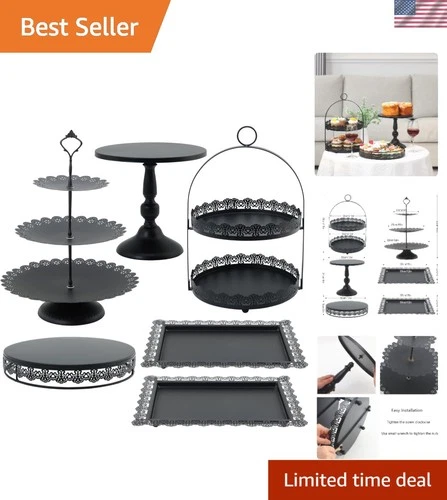 Sturdy 8-Piece Cake Stand Set with Lace Design for Stylish Dessert Displays