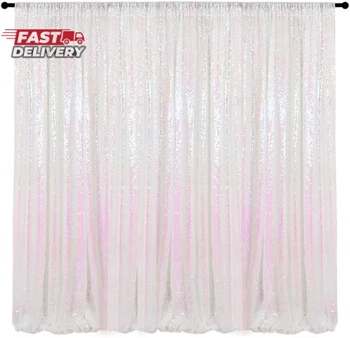 Iridescent White Sequin Backdrop Curtain 10Ftx10Ft Glitter Sequence Drapes for W