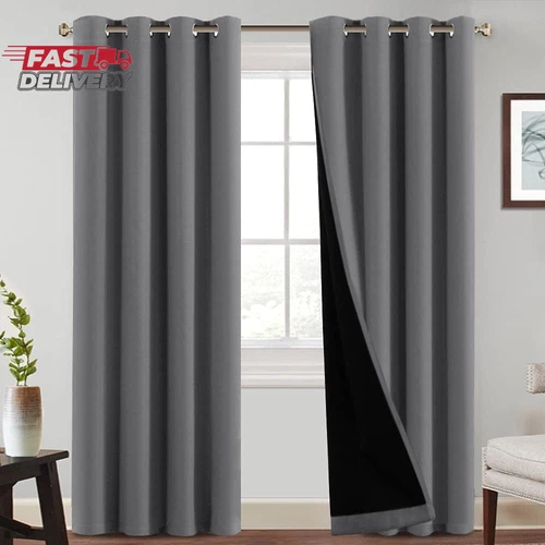 Princedeco 100% Blackout Curtains with Black Liner Backing Thermal Insulated Cur