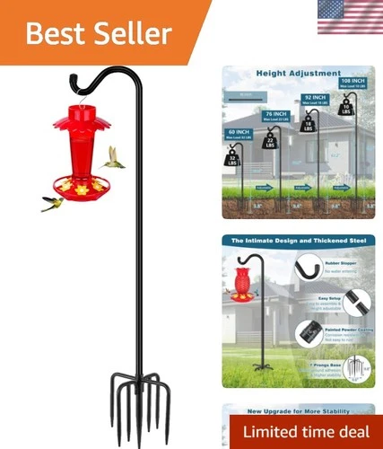 Shepherds Hook for Outdoor, 92 Inch Bird Feeder Pole with 7 Prongs Base, 3/4 ...