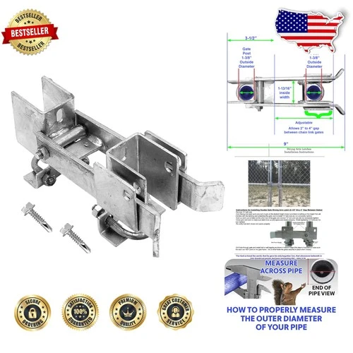 Chain Link Double Gate Latch - Strong Arm, Galvanized Steel, No Drop Rod Needed