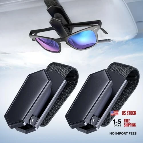 Sunglass Holder for Car (One-Handed-Operation, Gentle & Secure 2 Pack Black