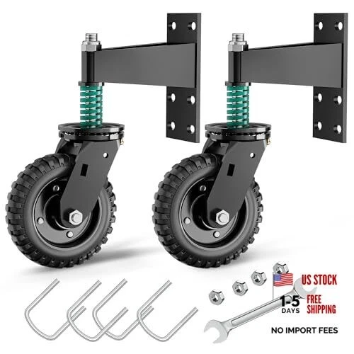 Heavy Duty Fence Gate Wheels, 6 Inch, Supports 550 lbs, Spring Black 6IN-2Pack