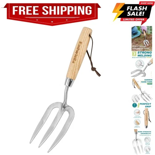 Garden Fork Hand Tool Small Weeding Fork 12 Inch with 3 Pointed Tines Wood Ha...