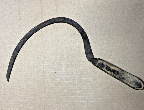 Antique Hand Sickle Grass Hook Curved Blade Wood Handle. Approx 15"
