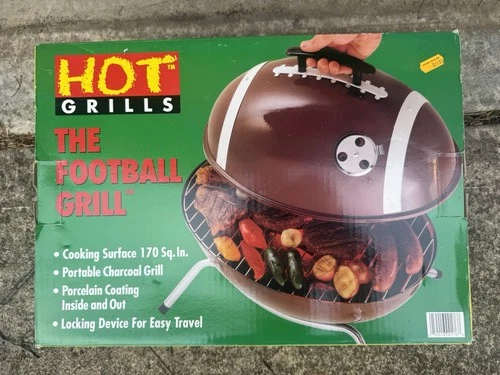 HOT Grills The Football Grill Portable Charcoal Porcelain Locking Device