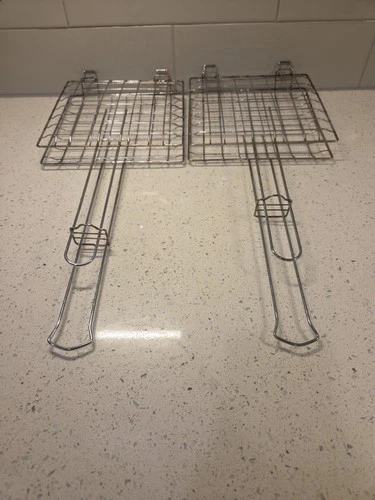 Set Of 2 Grill Basket 8x8" Lockable, Expandable, Heat Resistant