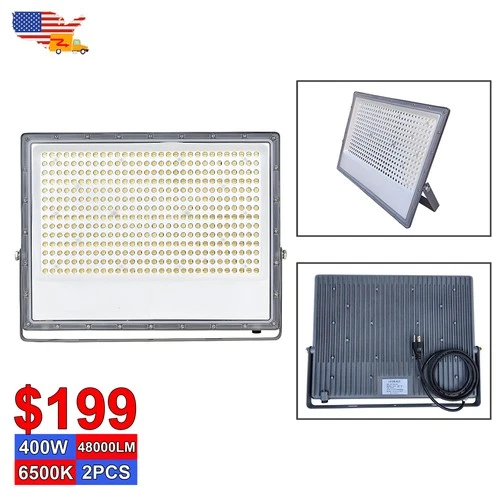 2 Pack 400W Plug in Flood Light 48000Lms IP65 Waterproof for Yard Garden Stadium