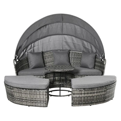 Round Outdoor Daybed Set with Adjustable Sun Canopy