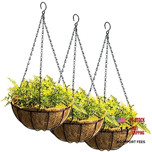 3 Pack 10" Metal Hanging Flower Pots Hanging Planters Plant Basket with Coco
