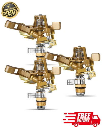 3 Pack Brass Impact Sprinkler Head 1/2 Inch Adjustable 360 Lawn Irrigation
