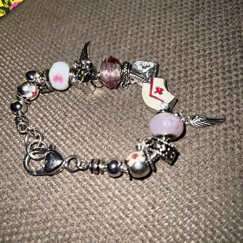 NURSE RN Theme Euro Charm Bracelet-Slider Silvertone Chain-7 1/2 Inches