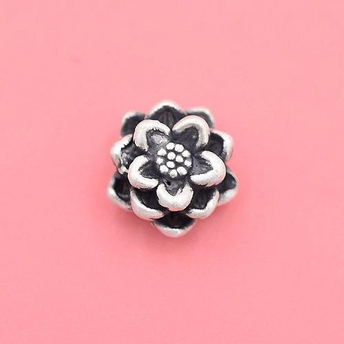 Sterling Silver Retro Lotus Flower Bead Charm for Bracelet A2933