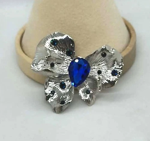New, 2" Blue Rhinestones Silver Tone Butterfly Brooch, Pin
